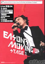 Moving On Stage 香港演唱會實況DVD(m58.net) 陳奕迅于2007年10月在香港紅館舉行的《Moving On Stage 1演唱會》,由于門票在正式公開發售時火速在數小時內爆滿,多次加場至16場。Eason今次由好友Wyman設計多個獨特中性造型,將潮流與傳統結合;而舞臺每晚都作出改動,讓觀眾有最佳的視覺效果。其中Eason以Hip-hop模仿金光閃閃的印度皇帝造型,再戴上多對女士出嫁時所的龍鳳手鐲及金豬牌大跳印度舞,形象最為特出。 一向尋求突破的Eason,在個唱加入大量舞蹈元素,而且意識大膽,尤其一幕在士高狂歡派對的舞臺上,他與一班衣著性感的舞蹈員狂跳辣身舞,令現場觀眾看得目瞪口呆;此外,他又借「小天鵝」舞蹈大玩幽默,令個唱高潮迭起。當晚他唱出30多首多年來的首本名曲,包括∶「K歌之王」、「落花流水」、「與我常在 」和「富士山下」等等。由于《Moving On Stage 1》口碑載道,Eason現正計劃籌備Stage 2。此卡拉OK 3VCD以高清攝錄,呈現最真實的《Eason's Moving On Stage 1》!