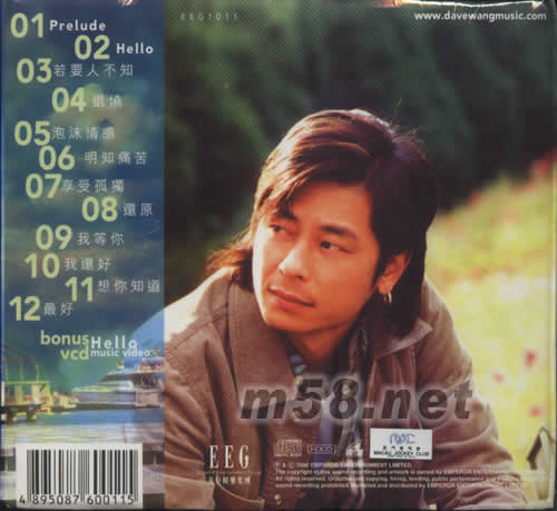HELLO 王杰(m58.net) 隨碟附送 Bonus VCD 一路下來 跌跌撞撞 是是非非 日夜跟隨.... 如些歲月,五杰命夠硬終究學(xué)會了懂得款待 生命的智慧! 王杰: [對命運勇敢說一聲 HELLO! 和,從不退縮]
