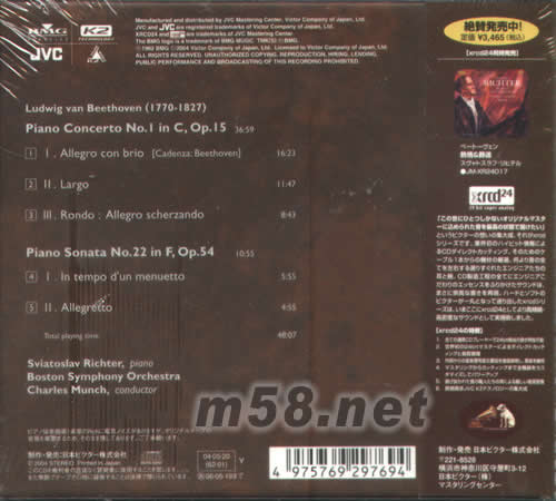 SVIATOSLAV RICHTEN BEETHOVEN CONCERTO NO 1日本版XRCD專輯背面圖片