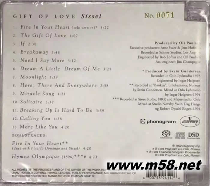 Gift Of Love (SACD) 限量版專輯背面圖片