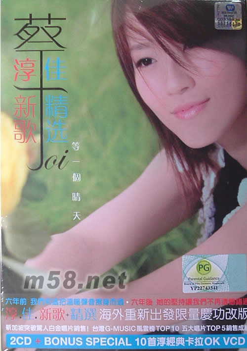 等一個晴天(限量慶功版)(m58.net) 海外重新出發限量慶功改版 新加坡突破驚人白金唱片銷售! 臺灣G-MUSIC風云榜TOP 10 五大唱片TOP 5銷售成績 2CD+BONUS SPECIAL 10首淳經典卡拉OK VCD