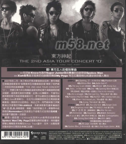 “O”亞洲巡回現場LIVE 精選CD(海外版)專輯背面圖片