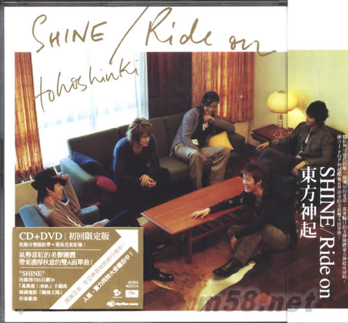 人氣席捲全亞洲的美聲男孩團體東方神起,最新日文單曲「SHINE/Ride on」,融合J-POP與超酷R&B節奏,帶來濃厚秋意的雙A面單曲?!窼HINE」收錄為TBS日劇30「萬萬歲!(暫譯)」主題曲。韓國電影「颱風太陽」形象歌曲。同時推出CD+DVD以及CD ONLY兩種版本。CD+DVD的DVD收錄「SHINE」的音樂錄影帶。初回限定版加收幕后花絮影像。