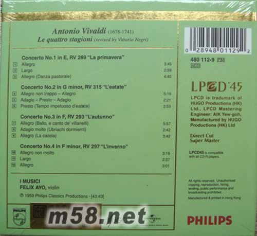FELIX AYO小提琴演奏維瓦爾弟 四季 LPCD45專輯背面圖片