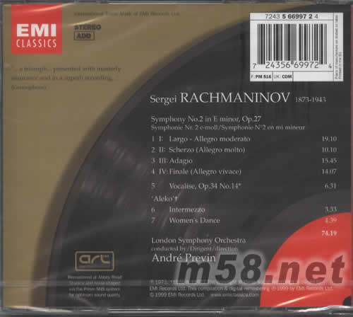 拉赫曼尼諾夫 第二 交響曲RACHMANINOV SYMPHONY NO 2 ETC. PREVIN(m58.net)