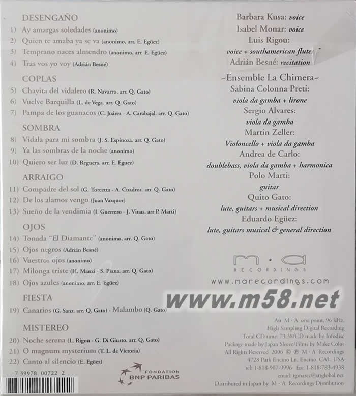 活躍歐洲的古樂團體與MA二度推出的跨界演奏力作,將文藝復興音樂與南美民謠連結,探索音樂根源!