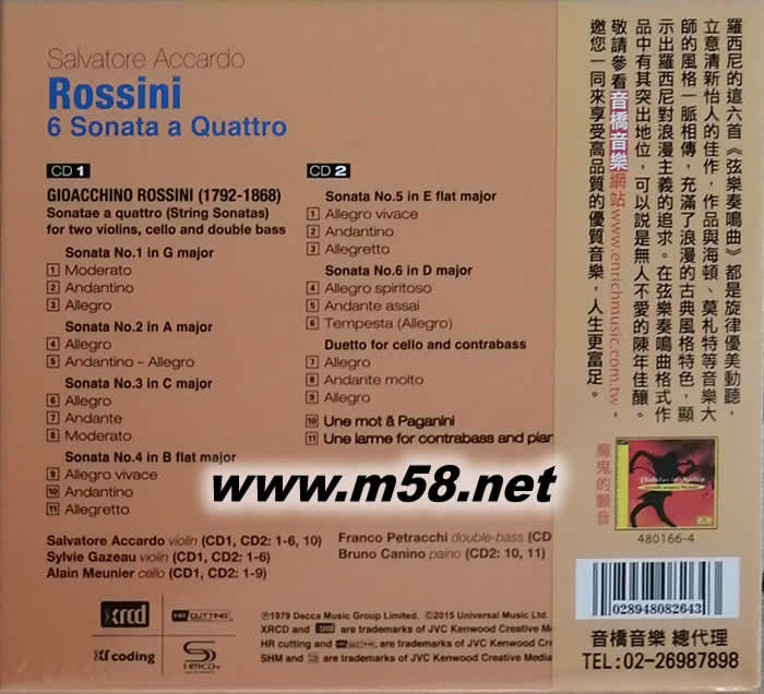 ROSSINI 羅西尼:No.1-6弦樂奏鳴曲 NEW XRCD+SHMCD 雙碟(m58.net)