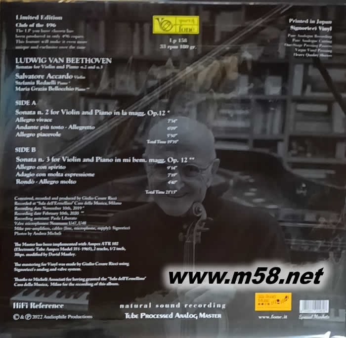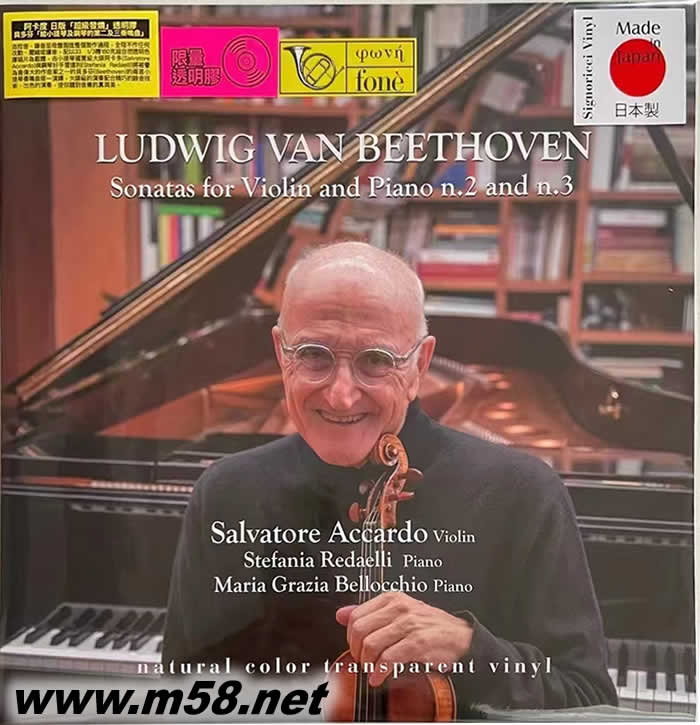 貝多芬給小提琴及鋼琴的第二及三奏鳴曲 BEETHOVEN SONATAS FOR VIOLIN AND IPANO N.2 AND N.3 黑膠 透明膠日本版(m58.net) Salvatore Accardo (小提琴) LAURA GORNA 小提琴 MARIA GRAZIA BELLOCCHIO (鋼琴) 阿卡多《普羅科菲耶夫小提琴奏鳴曲》LP阿卡多與其愛徒古納共同演繹普羅科菲耶夫不朽經(jīng)典雙小提琴奏鳴曲,與貝洛奇奧合作因目睹戰(zhàn)爭(zhēng)帶來(lái)的殘酷和撕裂感覺而創(chuàng)作,曲調(diào)陰暗艱澀的第一奏鳴曲。全球限量496張,180克超自然色透明膠唱片,日本壓制!