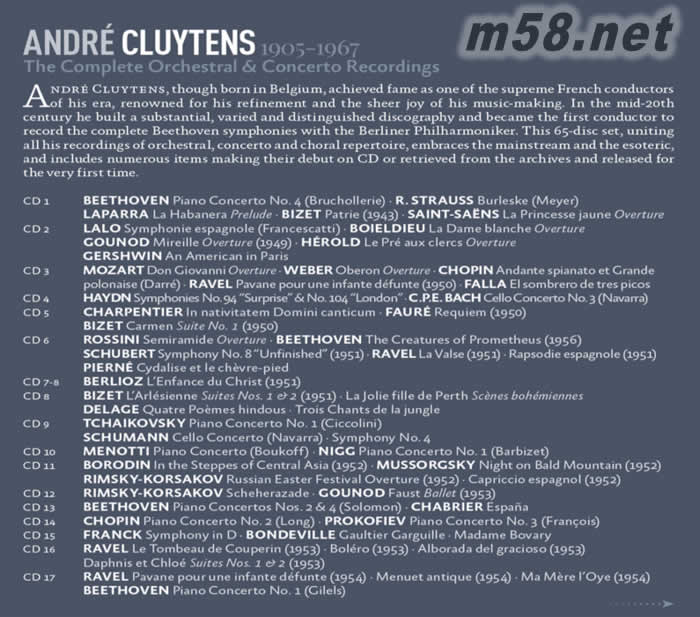 克路易坦管弦樂與協奏曲錄音全集CLUYTENS – THE COMPLETE ORCHESTRAL & CONCERTO RECORDINGS 65CD大套裝(m58.net)