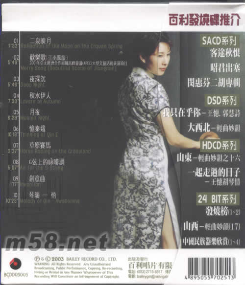 與世界對話的胡琴演奏家,DSD升碼發燒技術處理,她足跡遍及歐美亞非幾十個國家和地區,并參與了亞太經濟合作組織高峰會議(APEC),上海合作組織會議,上海申博,為中國一系列重大活動的文藝演出。