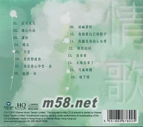 情歌蔡琴 香港版 HQCD專輯背面圖片