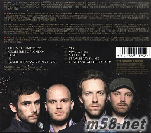 玩酷人生Viva la Vida or Death and All His Friends 臺灣版專輯背面圖片