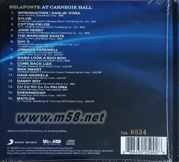 產品名稱:  BELAFONTE AT CARNEGIE HALL 貝拉芬堤在卡耐基大廳 ULTRAHD 限量版   [ULTRACD]