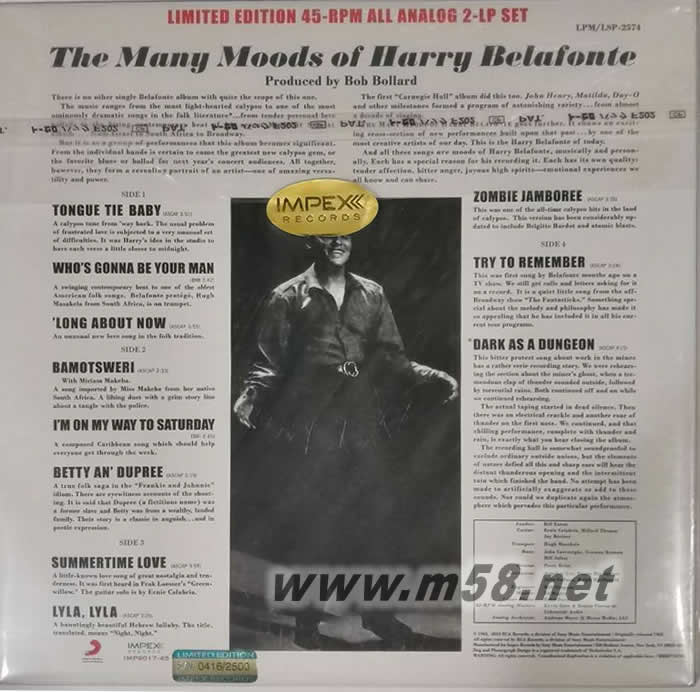 爵士心情 THE MANY MOODS OF BELAFONTE 45轉 雙黑膠 限量版黑膠背面圖片