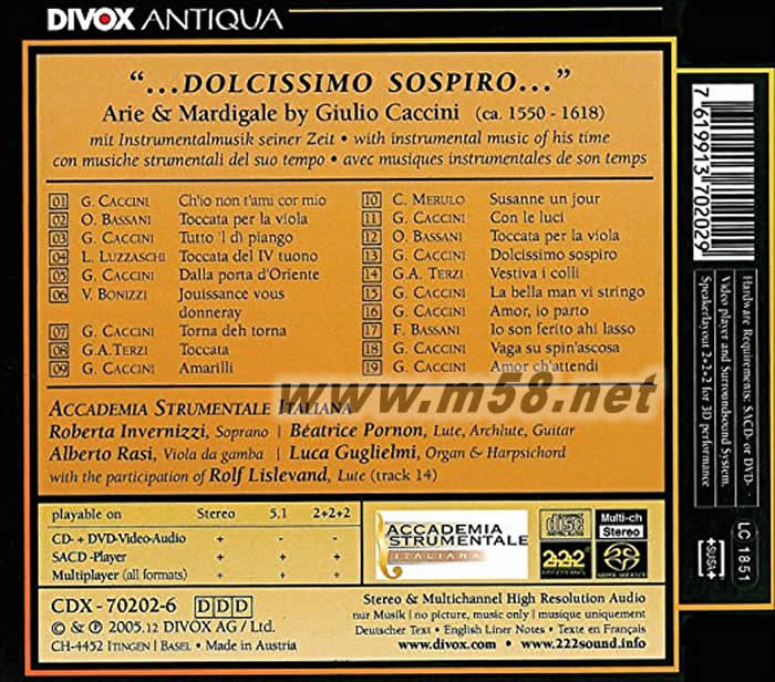 溫柔的嘆息Dolcissimo Sospiro: Invernizzi(S)Accademmia Strumentale Italiana SACD專輯背面圖片