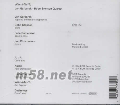 Jan Garbarek是自吉普賽音樂大師Django Reinhrdt以后歐洲最重要的爵士樂手之一。這位優秀的挪威薩克斯風手1968年與Eicher在意大利一見如故,從此開始了與ECM的合作。爵士樂向來是美國站主流地位,絕大多數歐洲爵士樂手不是被淹沒在主流大潮中,就是被美國風格同化,很少有堅持本身的背景文化,創作出反映自我生命的作品。Jan Garbarek無疑是個例外。他的作品充滿一種北極凜冽的氣息,更像一座冰雪覆蓋的火山,冷中藏熱,這來源于他挪威家鄉的純樸民謠,加上印地安旋律,加上印度,南美的民族音樂,從而使他的音樂風格豐富多彩。正如他自己說的那樣:"......你或許可以說在精神上與我環游了整個世界......”