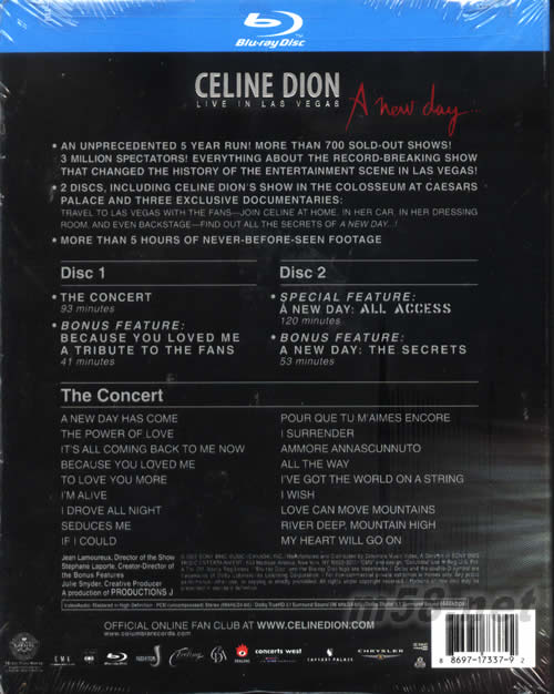 A NEW DAY CELINE DION LIVE IN LAS VEGAS(拉斯維加斯現場演唱會DVD)(高清晰度藍光加拿大版)專輯背面圖片