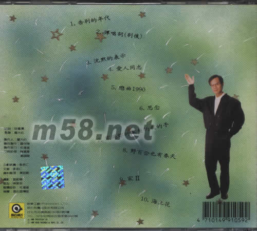 01. 告別的年代 02. 彈唱詞(別后) 03. 沈默的表示 04. 愛人同志 05. 戀曲1990 06. 思念 07. 穿過你的黑發的我的手 08. 野百合也有春天 09. 家II 10. 海上花