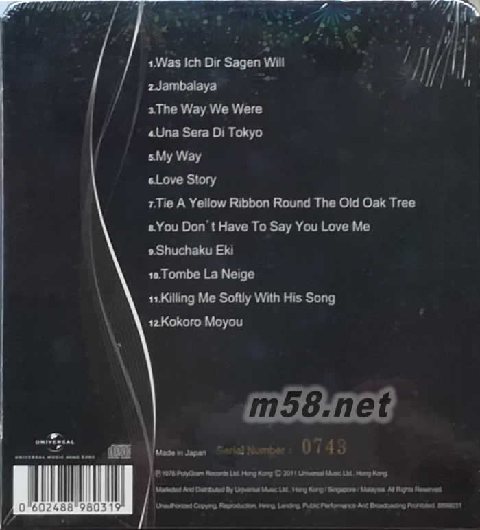 01. Was Ich Dir Sagen Will 02. Jambalaya 03. The Way We Were 04. Una Sera Di Tokyo 05. My Way 06. Love Story 07. Tie A Yellow Ribbon Round The Old Oak Tree 08. You Don't Have To Say You Love Me 09. Shuchaku Eki 10. Tombe La Neige 11. Killing Me Softly With His Song 12. Kokoro Moyou