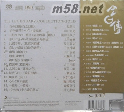 Sony Music徇眾要求重新推出2款經典作品全日傳-砂金之卷The Legendary Collection完全限量版單層SACD 1 + 1 DSDCD風雨同路30年伴您同行真經典昔日中文金曲的日文原唱濳伏多年光華再現採用日本DSD數碼編製,原裝母帶技術重新處理,邁向發燒靚聲天碟新紀元(單層SACD只可在SACD機上播放,DSD CD可在任可CD機播放)全部原裝日本壓碟!
