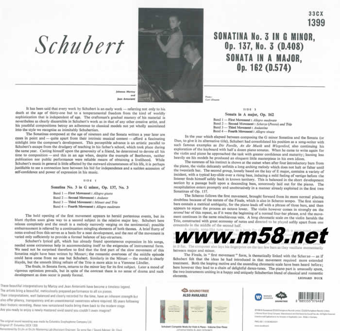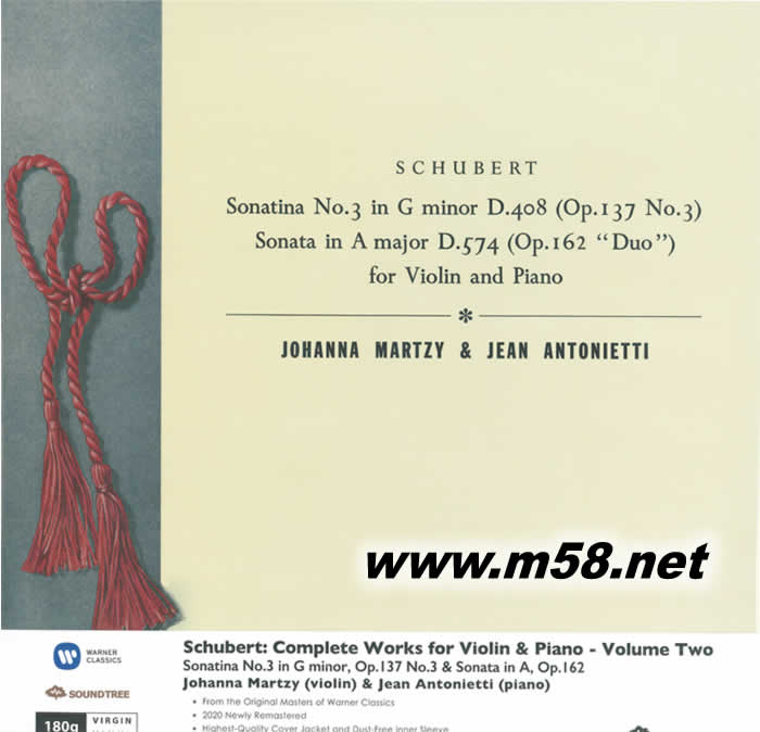 舒伯特 小提琴與鋼琴 第二集 Schubert Sonatinas for Violin and Piano Volume 2 小提琴 黑膠(m58.net)
