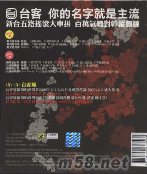 臺(tái)客出來(lái)臺(tái)客搖滾百萬(wàn)驚險(xiǎn)輯(m58.net) 這才叫精選!史上第一次經(jīng)典超HIT SONG完整收錄 信眾必拜!世紀(jì)臺(tái)客搖滾圣經(jīng) 六大臺(tái)客英雄 曲曲百萬(wàn)血汗 BABOO 伍佰 林強(qiáng) 陳升 張震岳 豬頭皮 雙CD28首臺(tái)客真性情 要你敢笑文聽(tīng)不夠臺(tái) 臺(tái)客沖沖沖!8/19+20臺(tái)客搖滾演唱會(huì)先聽(tīng)版 臺(tái)客UPUP!收錄臺(tái)客的榮耀混音紀(jì)念單曲—臺(tái)客頌