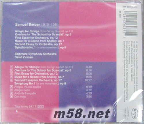 巴伯:柔版、第一交響曲BARBER ADAGIO SYMPHONY NO.1專輯背面圖片