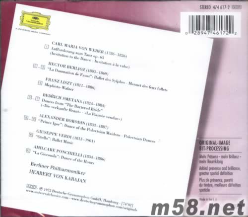 卡拉揚指揮的最著名的舞曲,包括邀舞,浮士德的舞會,時鐘之舞等