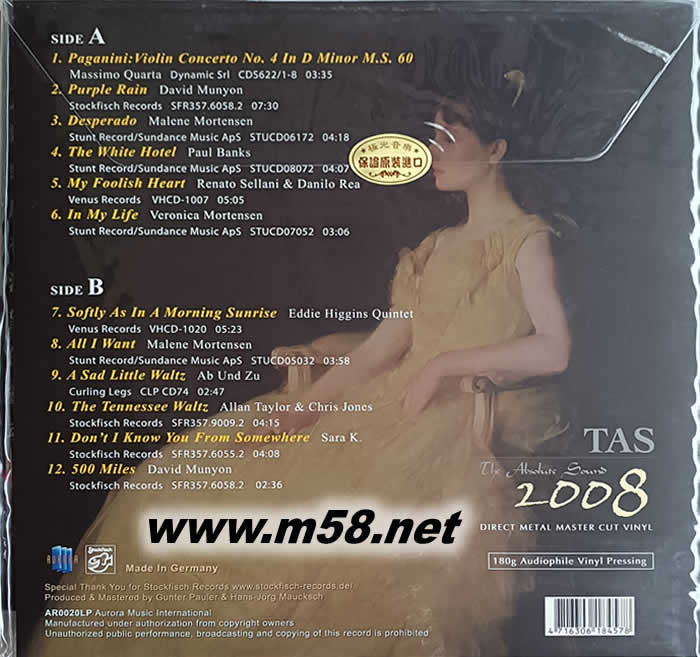 TAS 絕對的聲音LP 2008 180g 33RPM LP 黑膠 限量版專輯背面圖片