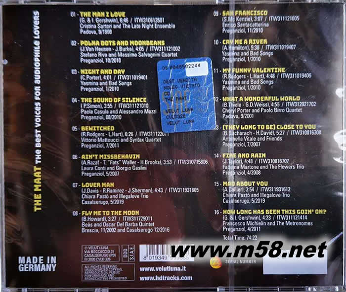 揚(yáng)聲器巨無(wú)霸Sigma Acoustic MAAT(瑪特)示范專(zhuān)集The Best Voices For Audiophile Lovers 限量版CD(m58.net)