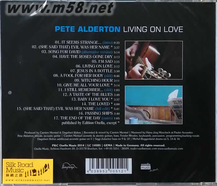 LIVING ON LOVE 為愛而生存 (老虎魚)(m58.net) 由老虎魚后期制作,完全德國制造發燒演奏,男聲示范盤 唱作男歌手彼德,艾德頓(pete alderton)醉心鎖研藍調音樂多年,最新專輯[為愛而生存(living on love)]盡管他天才橫溢一面,把英式藍調音樂加入美國及非洲同類音樂的元素,內容更為豐富,賦予特式,當中"evil was her name","ain't no sunshine",georgia on my mind",give me all your love"及"ferer","im said" 等充份顯示充滿魅力的感人演繹.