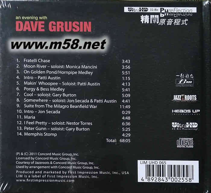 音樂之夜 An evening with Dave Grusin limited edition UltraHD專輯背面圖片