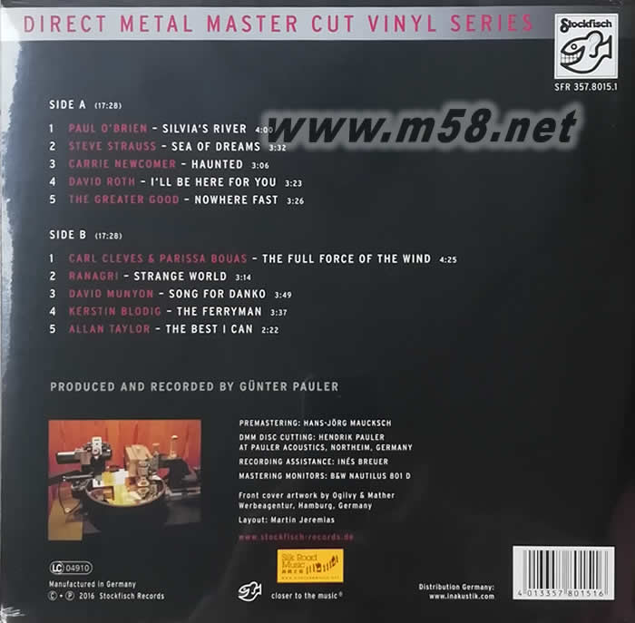 至尊發燒名牌<老虎魚(Stockfisch)>的直刻精選黑膠第3輯,以180克、33 1/3轉、1:1直刻母盤和處女膠壓碟,完全德國製造,輯錄了多位樂迷最鐘愛的殿堂發燒天王天后多首最新作品包括: