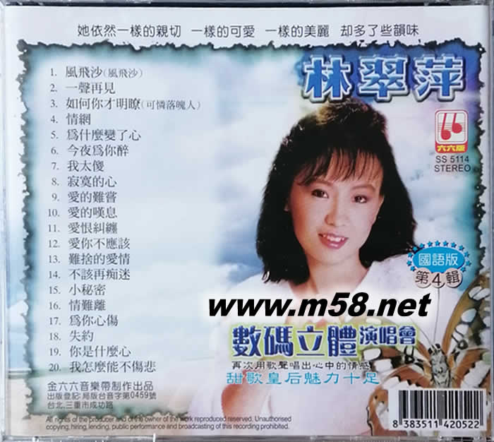 林翠萍甜歌皇后演唱會第四集 風飛沙專輯背面圖片