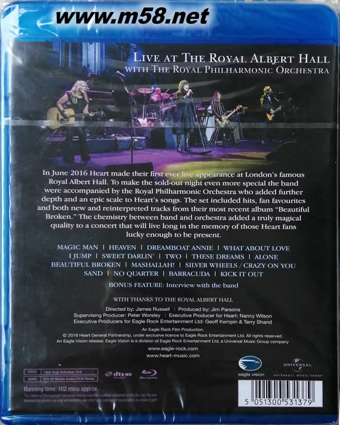 HEART 紅心合唱團(tuán) Live At The Royal Albert Hall With The Royal Philharmonic Orchestra[Blu-ray] 此心不渝 紅心經(jīng)典演唱會 藍(lán)光BD專輯背面圖片