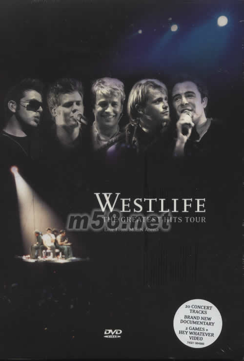 THE GREATEST HITS TOUR 曼徹斯特之夜演唱會 DVD(m58.net) Live From M.E.N Arena 20 CONCERT TRACKS BRAND NEW DOCUMENTARY 2 GAMES+HEY WHATEVER VIDEO 2003年的4月1日,WESTLIFE開始了長達四個月的演唱會之旅。怎么形容這些個令人摒息的瘋狂場面呢?觀眾過百萬——所有的演唱會的票都賣完——演唱的歌全是歌迷們最愛聽的——瘋狂程度難以想像!關于這次旅行的一切,簡直是一部長長的令地球震憾的科幻小說。 這張DVD里的演唱會就是在4月14日晚上的曼徹斯特新舞臺的表演。這張DVD完美的捕獲了2003之旅獨特的精華:活力和氣氛!