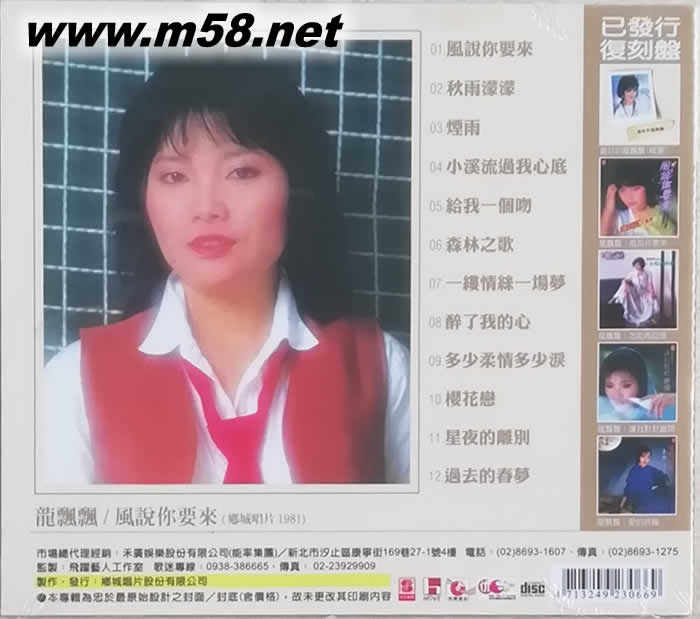 原聲系列 風說你要來 限量版(m58.net) 龍腔雅韻的歌聲 有你我共同的聽歌回憶 飄逸灑脫的嗓音 是市場公認的暢銷歌后 飄洋過海的傳奇 狂掃全球華人地區歌迷 龍飄飄 風說你要來專輯 發燒音質再造話題 每款限量500張
