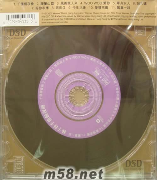 1、千億個夜晚 2、海誓山盟 3、風雨故人來 4、WOO WOO愛你 5、單身女人 6、加大碼 7、等你各應 8、話長江 9、今生以后 10、愛情把戲 11、緊靠一起