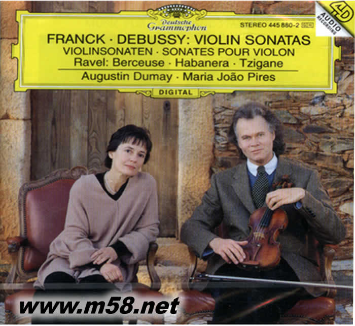 弗朗克 & 德彪西:鋼琴與小提琴二重奏(m58.net) 由奧古斯汀?杜梅和瑪利亞?胡奧?皮爾斯共同演奏的《弗朗克 & 德彪西:小提琴奏鳴曲》,2009年的《企鵝古典唱片指南》中推薦為三星。 弗朗克的《A大調(diào)小提琴奏鳴曲》集中體現(xiàn)了他的創(chuàng)作特征:旋律氣質(zhì)不凡,表現(xiàn)力深刻,和聲新穎,結(jié)構(gòu)堅實協(xié)調(diào)。弗朗克于1886年完成這首《A大調(diào)小提琴奏鳴曲》,時年63歲,正處于創(chuàng)作的巔峰期。就像他其他作品一樣,這首奏鳴曲是循環(huán)式的,四個樂章的主題素材都源自單一的原始動機。第一章的開場小節(jié)引介出這個動機,小提琴安詳?shù)匾耘靡糁髯嘀黝},將鋼琴微妙的四小節(jié)冥想具體化。主題以詩歌般的長度來鋪陳,先是被抑制,然后抒情性逐漸加強。熱情的第二樂章與這種幻想的曲風(fēng)形成強烈對比,十分激烈,雖然其中也有一些田園詩般慵懶的樂段。 奧古斯汀?杜梅(Augustin Dumay)出生于1949年,是當(dāng)代最優(yōu)秀的小提琴演奏家之一,在國際樂壇上享有盛名。杜梅的演奏既有法國風(fēng)格的細膩、浪漫與高雅,又有一種豪放的力量,純凈典雅的音色中閃爍著深厚的古典技巧,將音符幻化為傾瀉而出的魔力。杜梅錄有大量的唱片,其中許多唱片都獲得過大獎,包括“留聲機獎”和“格萊美獎”。他與女鋼琴家皮爾斯合作錄制的奏鳴曲最為世人所稱道,而他們二人與中國大提琴家王健組成的“室內(nèi)樂三重奏”更是深受世界樂迷的喜愛。 杜梅是莫扎特作品的出色詮釋者,聽過他演奏的人,都說他的音樂有一種無法抗拒的魔力和扣人心弦的感染力,令觀眾如癡如醉、如夢如幻般不能自已。 瑪利亞?胡奧?皮爾斯(Maria-Joao Pires,1944-)為葡萄牙女鋼琴家,9歲參加里斯本國際鋼琴比賽獲第一名,16歲在里斯本音樂學(xué)院畢業(yè)后在柏林參加國際青年鋼琴比賽獲第二名,同年在李斯特鋼琴比賽獲第一名。隨后到慕尼黑留學(xué),師從恩格爾繼續(xù)深造。1970年貝多芬誕生200周年時,她在布魯塞爾舉辦的紀念貝多芬鋼琴比賽中獲第一名,從此備受矚目。 皮爾斯以精湛的演奏技藝和獨特的藝術(shù)處理方式,成為眾多著名鋼琴家中的一位佼佼者,其演奏不像巴西女鋼琴家奧爾蒂斯那樣輕柔灑脫,而以細膩、典雅、秀麗、嫵媚而享譽世界。皮爾斯的演奏,音色極美,又善于在節(jié)奏與分句處理上表現(xiàn)出細微的變化。她擅長演奏莫扎特和肖邦的作品,其演奏和錄制的莫扎特鋼琴奏鳴曲、肖邦前奏曲集散發(fā)出濃郁的法國沙龍氣息。而肖邦夜曲則在浪漫氣氛里,蘊涵著些許陰柔。 她與小提琴家杜梅組成的二重奏,是目前活躍在世界樂壇的最佳組合,深得各媒體和樂迷們的好評。她和杜梅、王建一起,已形成室內(nèi)樂的最佳搭檔,演繹的室內(nèi)樂作品有一種清新的美感。