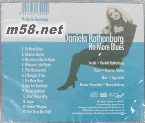 NO MORE BLUES(m58.net) 女高音 《丹妮拉·羅滕寶:不再藍調》中德國最具實力的爵士女歌手丹妮拉·羅滕寶(Daniela Rothenburg)以嘹亮動人的聲線,充滿感情的演繹等迷倒萬千樂迷,成為歌手爵士樂界最炙手可熱的女歌手之一,最新專輯重新演繹多首不巧名曲,包括Besame Mucho ,This masqerade, Cra me a river ,Don’t know why 等13首作品。