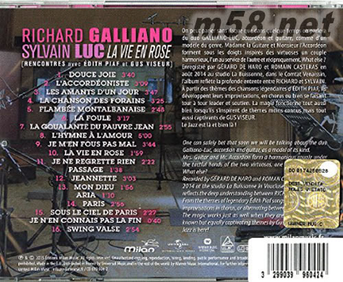 LA VIE EN ROSE (HOMMAGE TO EDITH PIAF)玫瑰人生: 理查蓋利安諾 (手風(fēng)琴), 席爾維.路 (結(jié)他)(m58.net)
