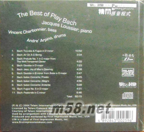 Best Of Play Bach 鋼琴與大提琴 ULTRAHD專輯背面圖片