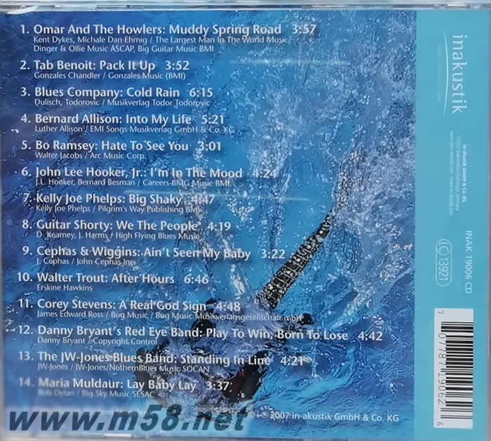 德國著名發(fā)燒廠牌in-akustik除了製作高水平的錄音外,亦代理不少國際著名廠牌如RUF、Telarc、Rounder、Alligator及Crosscut等。此專輯收錄了多位馳名國際的藍(lán)調(diào)天王、天后的經(jīng)典名曲如:[Blues Company”Cold Rain”]、[Tab Benoti”Pack It Up”]、[Bo Ramsey”Hate To See You Go”]、[John Lee Hooker Jr.”I’m In The Mood”]、[Cephas & Wiggins”Ain’t Seen My Baby”]及[Maria Muldaur”Lay Baby Lay”]等,喜歡藍(lán)調(diào)音樂必備之選。