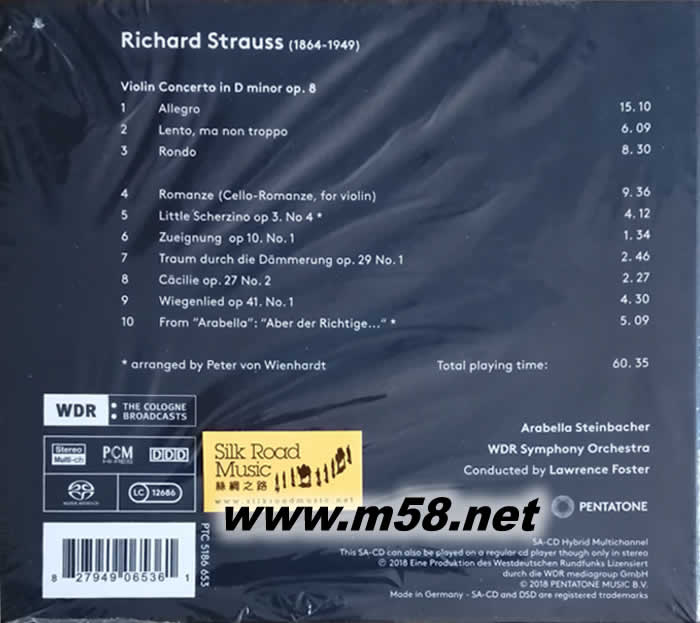 施特勞斯小提琴協(xié)奏曲/抒情小品選 Richard Strauss : Violin Concerto Miniatures SACD專輯背面圖片