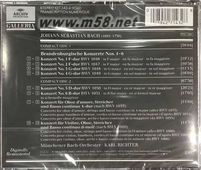 瓦格納稱為“一切音樂中最驚人的奇跡”:卡爾·李希特 - 巴赫:勃蘭登堡協奏曲 / Karl Richter - Bach: Brandenburgische Konzerte 雙CD( ARCCD4271432 )