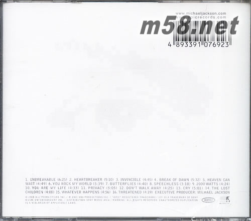 Invincible(白色封面) 港版專輯背面圖片