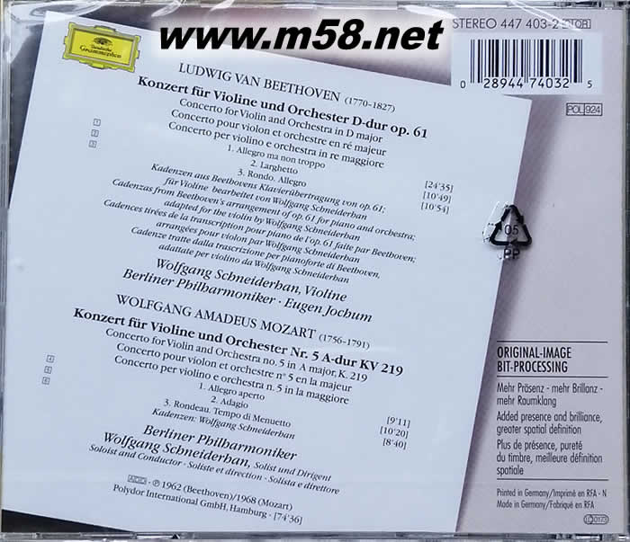 Beethoven & Mozart: Violin Concertos貝多芬 & 莫扎特:小提琴協奏曲 CD 大禾花版(德版)專輯背面圖片