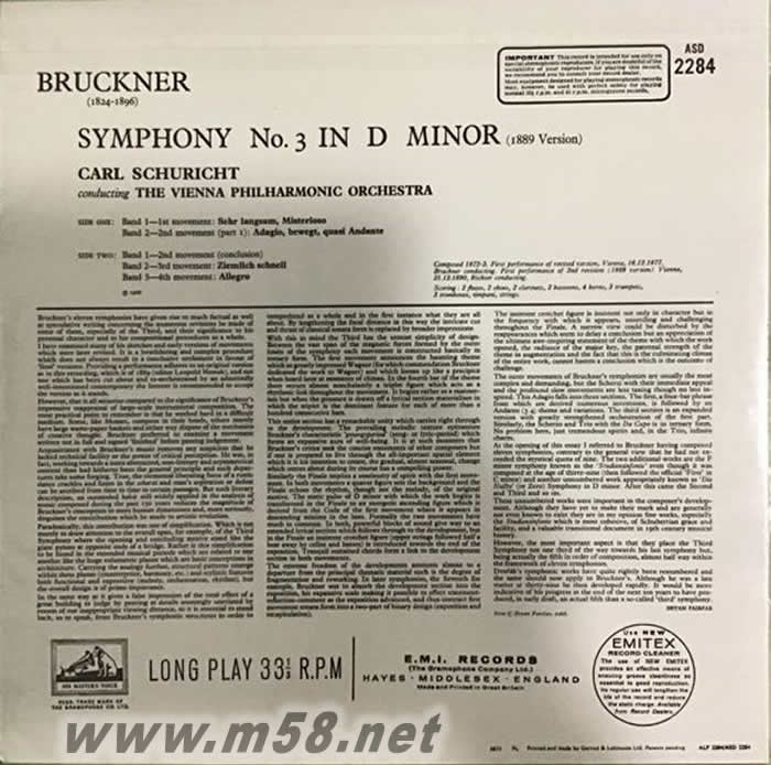 布魯克納 D小調第三交響曲Symphony No. 3 In D Minor 180g 33RPM LP 黑膠(m58.net)