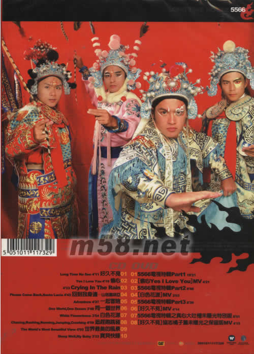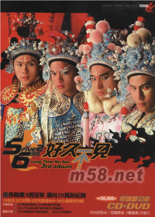 價格為估,以實到貨為準! 好久不見 奇跡慶功版(CD+DVD)(m58.net) 銷售稱霸3周冠軍 邁向20萬新紀錄 !! 10首全主打好歌+3支完整版MV+30分鐘電視特輯 內幕收錄: 5566電視特輯真心大吐槽未暴光特別版 [好久不見]協志橘子篇未暴光之保留版MV 慶賀好禮: [5566奇跡變身]京劇寫真冊 [武士56]神氣畫卡 5566好貼心!回饋歌迷!2種選擇1次發行