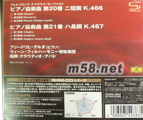產品名稱:  莫札特: 第20, 21號鋼琴協奏曲 Mozart: Piano Concertos No.20 & 21 (SHM-CD系列日本版)   [SHMCD]